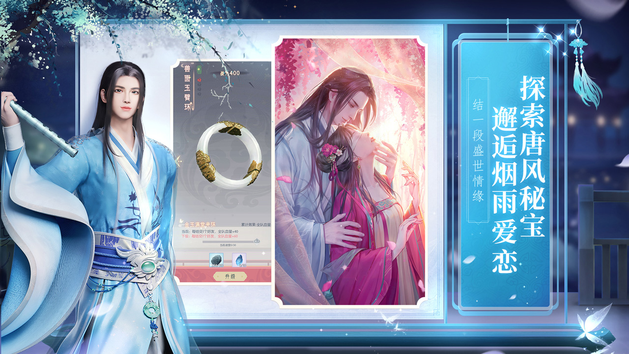 故事始于一场宫廷阴谋,你扮演的公主背负家仇国恨,在养父的庇护下于万宝阁习得技艺,逐步接近真相核心。游戏的核心玩法围绕剧情推进展开,你需通过对话选择影响故事走向,与多位身份、性格各异的男性角色建立羁绊。除了主线复仇篇章,你还能自由探索盛唐市井:参与诗词雅集、经营商铺、驯养宠物,甚至体验宅斗社交。纯3D构建的亭台楼阁、瀑布园林栩栩如生,晨光暮色中的飞檐翘角与落英缤纷,让你每一步都仿佛行走在古画之中。