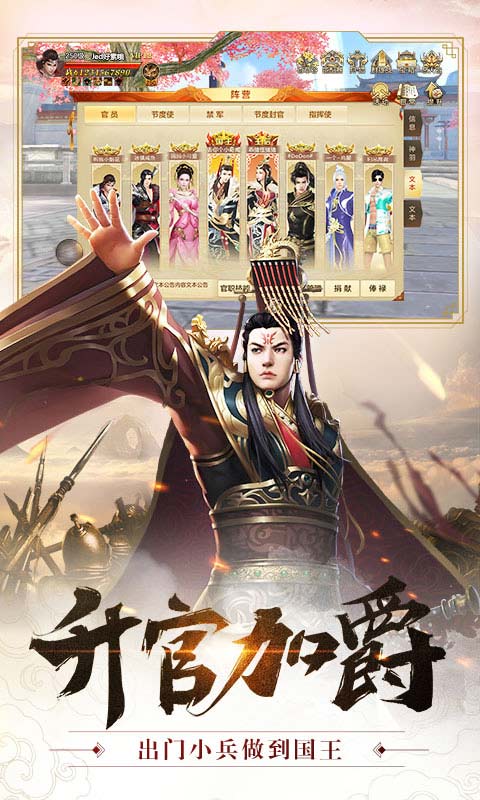游戏的核心特色体现在多元化的玩法模式上:文化传承模式允许玩家研究古代文化传统(如书法或兵法),解锁新技术和能力,增强角色属性;官职任命模式让玩家担任历史官职(如将军或谋士),在政治和军事领域展示才能,获得专属加成;联盟战争模式支持多玩家团队参与全球竞争,通过集结进攻或奇观争夺实现大规模协作。这些模式不仅提升策略深度,还融入角色培养元素,如英雄系统(例如张角、张宝等历史人物),玩家可通过战斗俘虏敌方英雄,执行关押或赎金等互动。