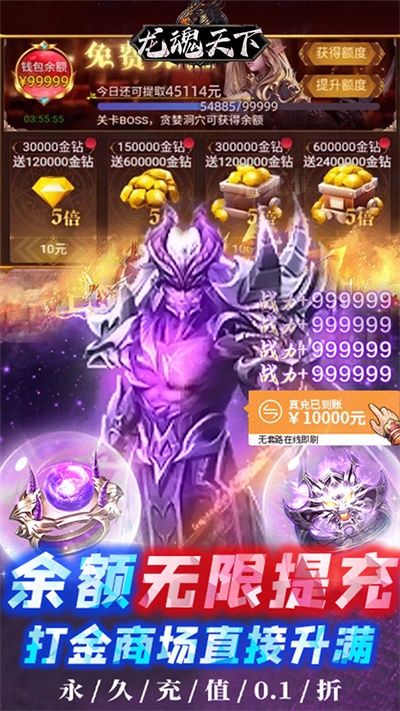 龙魂天下的核心优势在于:生态平衡性:强调无会员、无顶赞、无沙捐的公平环境,货币系统纯净(金币消耗为主),装备全靠打怪获取,小极品属性与隐藏设定增加探索乐趣,有效缩小平民与土豪差距。资源获取友好度:离线挂机不耗流量,自动回收功能解放双手;每日签到、在线奖励、成就系统及各类登录礼包(如百万元宝、无限材料箱)确保资源稳定积累,非付费玩家亦可稳步成长。玩法可持续性:地图设计环环相扣,数量达数百张;定期更新肉鸽玩法、战棋副本及角色皮肤;长期运营活动(如新服冲榜、限时礼包)保障内容新鲜度。