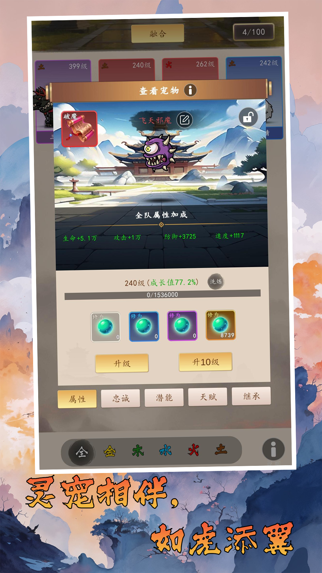 最突出的特色在于贯穿全局的随机机制。所有英雄角色均为随机生成,每个角色拥有独特的属性组合与天赋技能,甚至难以找到完全相同的两名弟子。装备与武学系统同样遵循随机原则,每一件武器、每一本秘籍都可能附带完全不同的属性词条与特殊效果。顶级武学最多可携带四条随机属性,包括通用属性与三条特殊属性,特殊属性涉及作用目标、触发概率、减益/增益效果等多个层面。灵物收集系统融合山海经异兽设定,允许捕获各类珍奇异兽并通过聚仙阵进行培养进化,形成独特的战斗伙伴体系。修真养成系统覆盖炼丹、炼器、功法研习等传统修仙元素,提供高度自由的成长路径定制空间。多元化的社交互动支持宗门创建、好友组队及跨服竞技等多种协作模式。