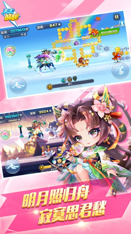天天酷跑是一款风靡全国的竖版跑酷类手机游戏。小伙伴们将操控各具特色的角色,在充满奇幻色彩的赛道上疾驰,通过跳跃、下滑躲避障碍,收集金币和道具,不断挑战更远的距离和更高的分数。它凭借简单易上手的操作、丰富多样的角色装备系统以及极强的社交互动性,成为了众多酷跑迷休闲娱乐的首选。