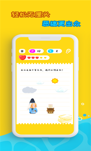 游戏的核心玩法围绕解决创意谜题展开,包含海量关卡,难度从简单到烧脑层层递进。你可以自由选择挑战模式,包括烧脑、经典和脑洞三种类型,每种模式都带来独特体验 。关卡设计丰富多样,涉及文字解谜、图形推理和道具组合等元素,例如使用提示功能或道具辅助通关。游戏中没有时间限制,让你可以仔细推敲答案,反复尝试直到满意 , 。部分版本还支持玩家自己设计谜题并分享给他人,增加了互动性和可玩性。