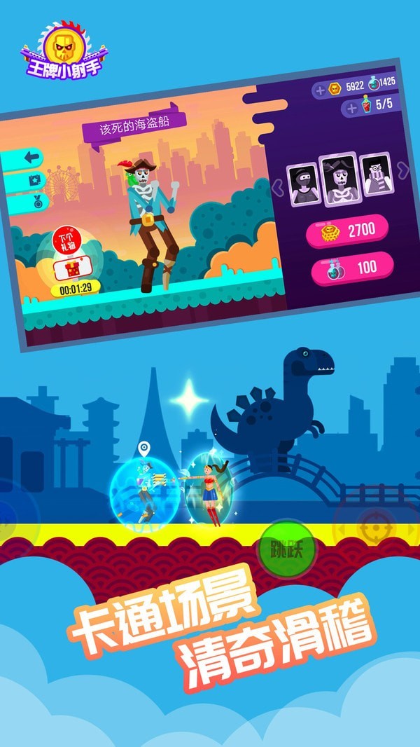 王牌小射手的特色首先体现在多元化武器系统上,上百种武器任你选择,从传统狙击枪到科幻激光炮,每种都有独特属性和使用技巧,比如披萨发射器会引发旋转后坐力,增加战斗乐趣。创新的英雄工厂玩法通过扭蛋机产出变异英雄角色,打破传统抽卡模式,让角色解锁更富策略性。关卡设计同样出彩,五种难度递增的类型(如射击挑战、道具收集、BOSS战)结合布娃娃物理引擎,角色中弹后会像橡皮人一样弹飞,场景互动滑稽十足。