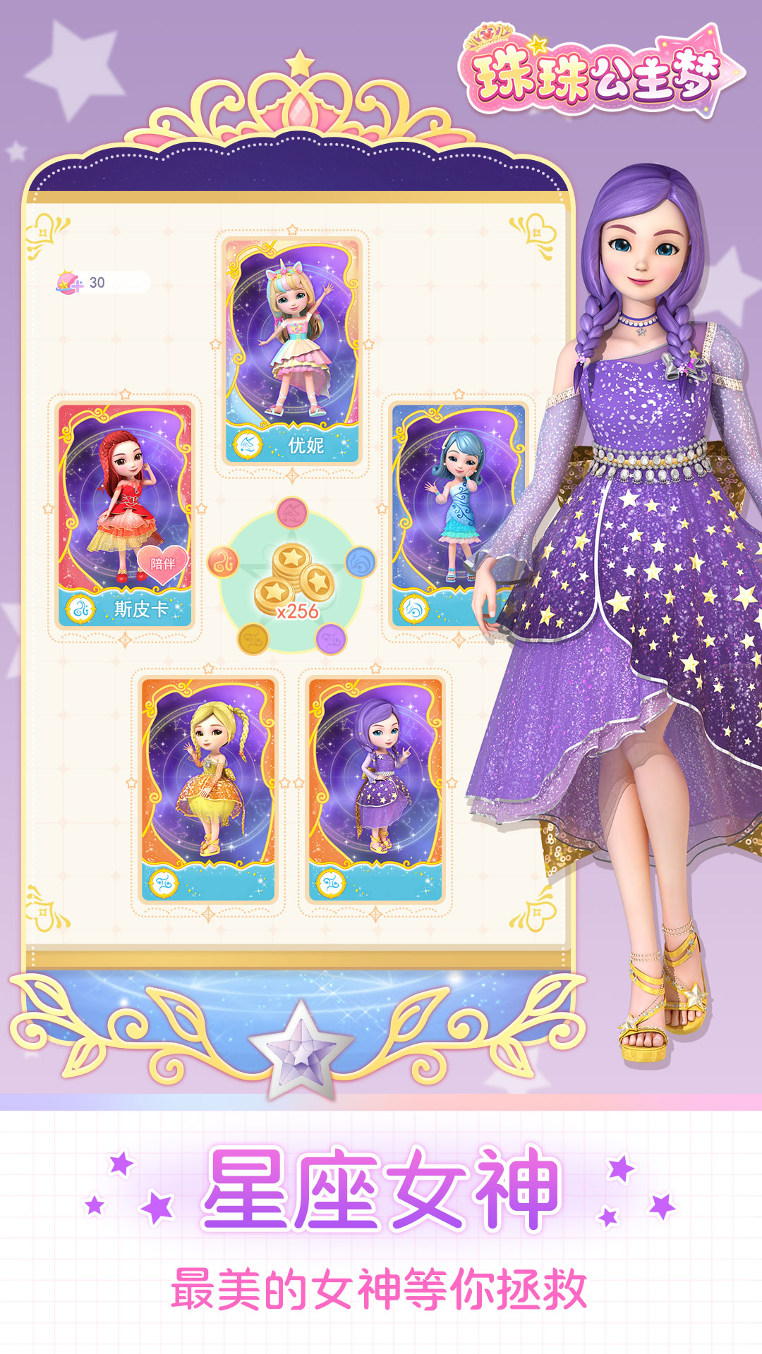 玩家将扮演公主角色(如珠珠、莉莉、莎莎等),通过手指滑动屏幕控制角色在精心设计的关卡中跑酷。跑酷过程中,玩家需要灵活躲避障碍物,同时收集散落在赛道上的精美服装、首饰和金币。核心玩法在于,抵达终点后,系统会对玩家沿途收集并最终穿着的服饰进行自动穿搭,并与对手进行服装搭配PK,胜出即可赢得丰厚奖励。游戏还包含解救星座女神的剧情线,每位被解救的女神拥有独特的故事和能力,解锁她们能获得新的剧情与奖励。