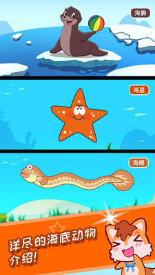 应用的核心特色在于其高互动性与丰富内容:• 动态海洋图鉴:包含超过100种海洋生物的3D动态模型及真实叫声,点击海龟可见其悠游,触碰章鱼展示喷墨技能,每种生物均配有语音讲解其生活习性。• 沉浸式互动设计:支持儿童通过触摸、拖拽等简单操作与海洋生物深度互动,如给鲸鱼挠痒痒、与海豚玩顶球游戏、和寄居蟹击掌。• 多感官体验融合:结合鲜艳色彩、可爱卡通风格与高度还原的海洋音效(海浪声、动物叫声),搭配原创舒缓背景音乐,打造视听触觉协同的沉浸环境。• 持续内容更新:定期新增玩法与生物,如珊瑚礁种植系统,引导孩子观察生态变化。