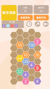本产品核心玩法围绕数字合成与消除展开,屏幕上随机出现的数字需要通过滑动操作将相同数值调整至相邻位置,当两个相同数字接触时即可合成为更高数值。游戏主界面设计为独特的大六边形棋盘,需要将六边形组合置于空白处,通过创造并消除完整行或多行线条来获取分数,通过连击消除实现分数倍增效果。 海量关卡设置构成丰富挑战体系,每一关都需要仔细思考当前步骤同时合理布局后续操作。当棋盘无法容纳任意六边形组合时,游戏进程结束,这种设计确保了每次体验都充满新鲜感与不确定性。
