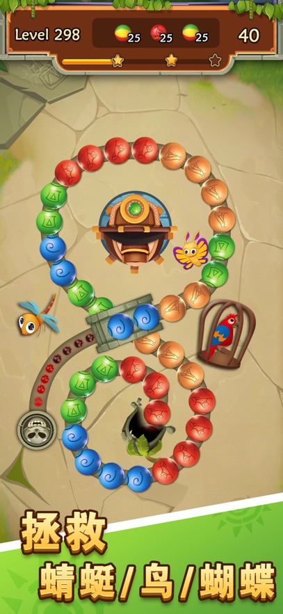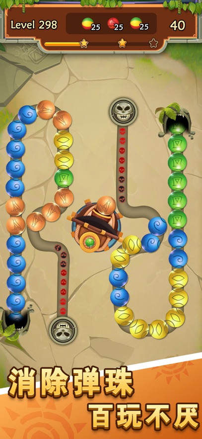 消除玩法特别新颖——通过发射彩色珠子连接同色球,三个以上就能消除,简单直接却充满变数。超过几十个精心打造的关卡,每一关的轨道形状和彩球排列都藏着不同的小心思,需要随时调整策略。浓郁的玛雅主题风格贯穿始终,从金字塔背景到神秘图腾装饰,每一处细节都营造出探索古老文明的氛围。道具系统更是锦上添花,比如能炸开一片区域的爆炸球,或是让时间暂停的魔法道具,用好了能瞬间扭转局面。紧凑的节奏设计让整个过程毫不拖沓,彩球哗啦啦滚动的声音搭配快节奏操作,紧张感十足。]