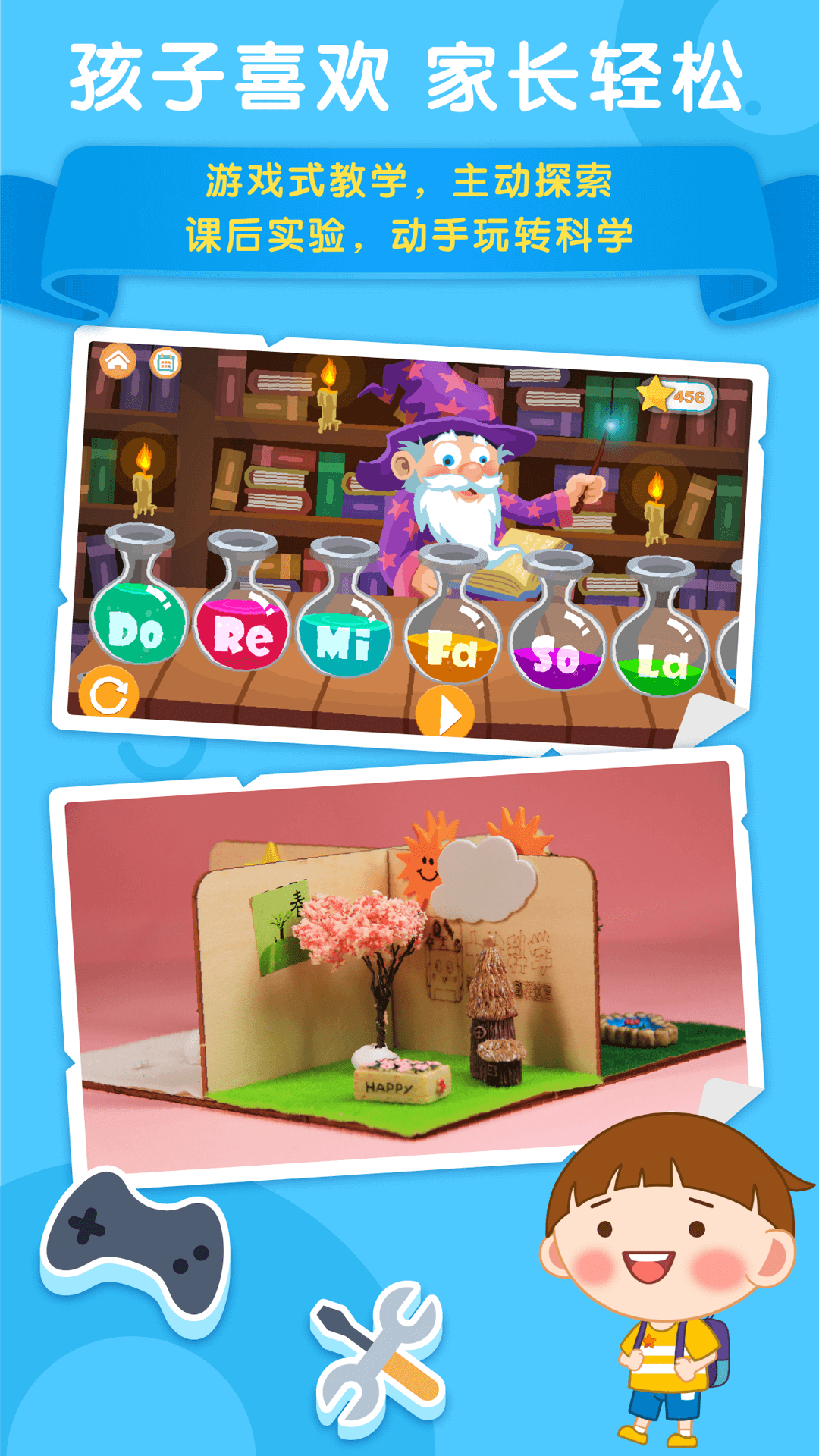 原创的五步学习法从观察到推理层层递进,培养小伙伴像科学家一样的思维方式。动态虚拟实验室堪称黑科技,宝贝们能360°旋转观察细胞结构,或用手指划动模拟液体流动。独创的跨学科互动模式不是枯燥背诵知识点,而是用生活场景引发思考。比如牙齿小船关卡让孩子调整浮力与重心平衡,硬币金鸡独立实验生动演示力矩原理。所有科学概念都用萌萌的卡通形象呈现,连分子结构都变成了会跳舞的小精灵。AR实验功能更是惊艳,用手机对准实验盒就能看到立体投影演示原理。