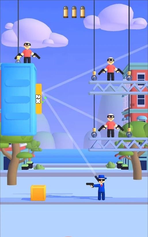 游戏的操作简单直观,玩家通过滑动屏幕来控制特工的射击方向和力度,目标是消灭所有敌人。随着关卡的深入,敌人将会变得越来越强大,环境中的障碍物也会更加复杂,玩家需要利用反弹、爆炸等物理效果,合理规划子弹的使用,才能击败敌人,完成任务。