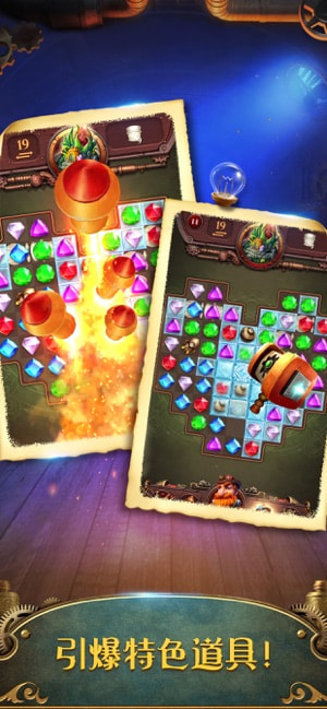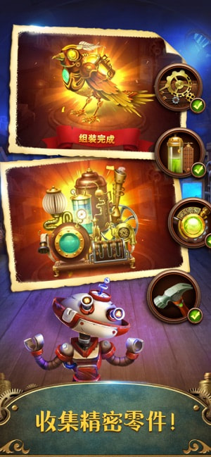 蒸汽谜阵的亮点在于其沉浸式剧情和交互体验。剧情如动画般展开,从小镇荒废到复兴的过程穿插机械神鸟传说和时光机谜团等支线,通关后解锁额外番外篇,叙事完整引人入胜。消除特效设计炫目:五连消触发蒸汽锅炉爆炸清屏,配合齿轮音效,解压感强烈。动态机关如移动传送带和定期打乱的齿轮棋盘,考验玩家预判和应变能力。每周限定活动如机械嘉年华掉落稀有皮肤零件,为收集控增添乐趣,确保内容常新。
