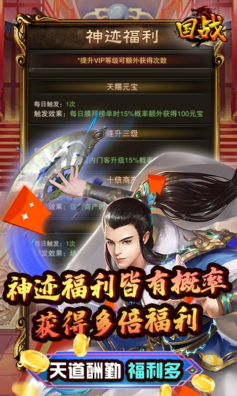 国战是一款让你化身战场指挥官、体验万人同屏激战的策略手游。小伙伴们将在恢弘的三国乱世中,指挥千军万马参与大规模国战对抗,感受排兵布阵的智慧与兄弟并肩的热血。这里不仅有瞬息万变的沙场风云,更融合了角色成长、资源经营与深度社交,让你在掌中尽享运筹帷幄的豪情。