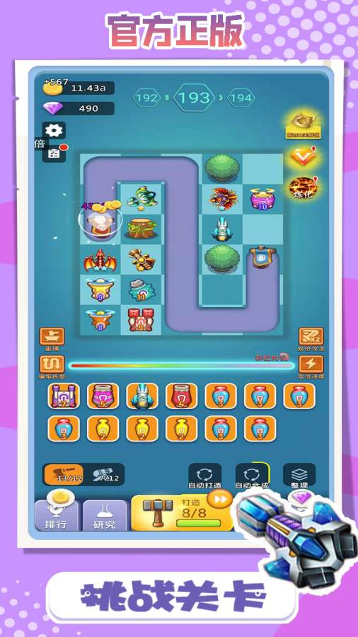 进入这款作品后,咱们会发现操作方式特别简单直观。只需要拖动炮台到战场上,通过合成来提升炮台阶级,然后指挥它们攻打不断来袭的怪兽。每次成功击败路径上的小怪都能获得金币奖励,这些金币可以用于购置新的防御装置。进程推进,咱们能解锁新单位并领取丰厚奖励,比如夜楼炮会额外赠送10颗钻石。作品中还设有完善的新手引导系统,手把手教会咱们如何打造炮台,从基础合成到高级炮台的获取都有详细指导。