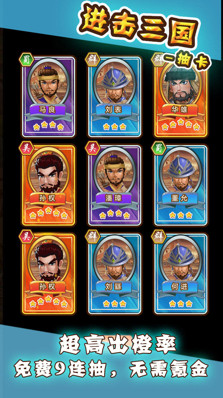 进击三国是一款融合策略与卡牌玩法的三国题材手游。它以Q版乐活画风重塑经典历史,让你在清新明快的视觉体验中招募名将、组建军团,体验颠覆传统的幻想三国征程。无论是战场布局还是武将养成,都能带给你既轻松又深度的游戏乐趣。