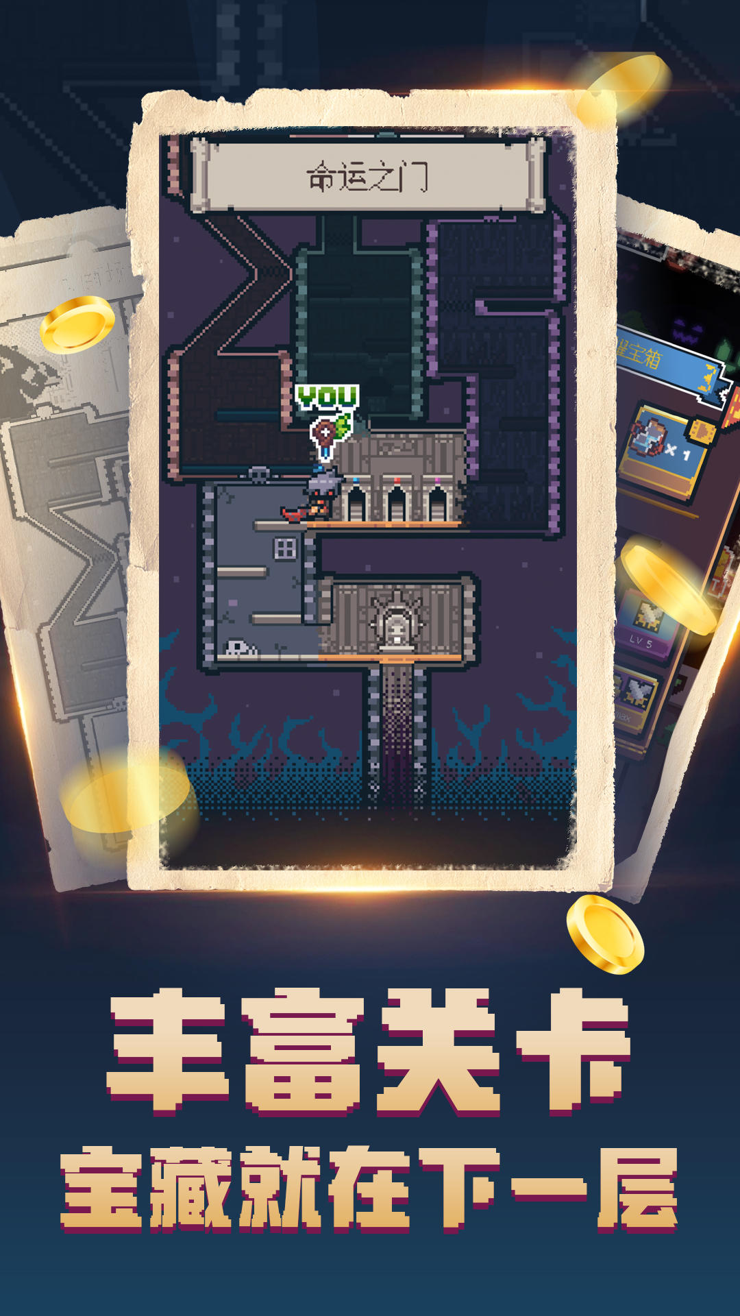 • 英雄收集系统:招募沉睡篝火的僧侣、精灵游侠等特色角色,通过金币抽卡或任务解锁,每位英雄携带独特外观和觉醒技,如雷霆锤击、全屏暴风雪等。• 深度养成线:角色升星需积累深渊BOSS经验,突破星级时需收集傀儡核心混沌碎片等稀有材料,解锁开局祝福与纹章特效。符文系统永久强化暴击率、移速等八维属性。• 策略性关卡:地牢中暗藏连锁机关,部分陷阱可反制敌人;宝藏房间需解谜开启,装备合成系统让你自由搭配套装效果。