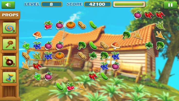 水果农场最显著的特点是采用了经典的连连看模式,同时融入了时下热门的消除元素。应用中设计了丰富多样的关卡挑战,包括收集指定数量的蔬菜水果或泥土等不同任务目标。操作方式极其简便,只需通过简单的滑动或点击即可完成水果消除。应用内设有全球排行榜系统,可以与其他参与者进行竞技比较。画面风格采用萌态卡通设计,配合清新的农场背景和各种新鲜水果元素,营造出独特的视觉体验。应用还提供了六次提示机会,需要合理规划使用策略,这些特色功能共同构成了极具吸引力的娱乐体验。