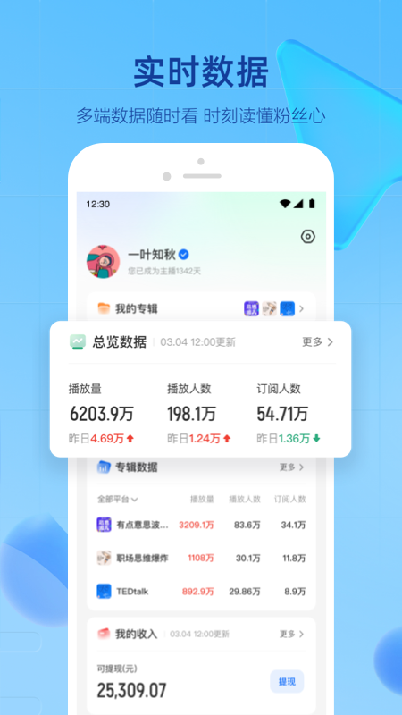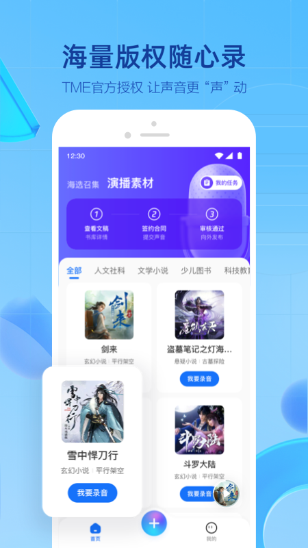 声播是一款专为声音创作者打造的创意伙伴,让每一个热爱表达的小伙伴都能轻松开启声音之旅。这个贴心助手搭建了从内容创作到分发的完整桥梁,内置海量正版有声书资源,让大家可以随心录制,完全不必担心版权困扰。无论是想记录生活点滴还是制作专业节目,这里都准备了简单易用的工具和清晰明了的数据看板,帮助每一位创作者更好地理解听众喜好,优化自己的内容方向。