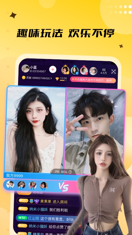 来乐的亮点在于它如何让你在娱乐中感受到真实和便捷。24小时不间断的真人在线互动,拒绝孤单,确保你随时能找到陪伴;高清视频直播提供视觉盛宴,画质清晰流畅,仿佛亲临现场。PK功能升级后,支持双人竞技,增加刺激感;电商商城整合让购物变得有趣,直接在直播间下单,省去切换app的麻烦。兴趣小组和活动组织功能让你轻松扩展社交圈,找到志同道合的朋友。这些亮点不仅提升体验,还让日常娱乐更生动,操作上无需复杂步骤,一键就能开启欢乐时光。