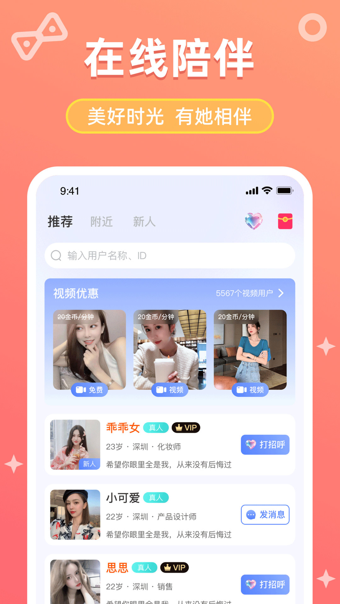 她伴是一款为单身小伙伴量身打造的真人视频聊天与交友平台,这里汇聚了来自各地的高颜值朋友,通过视频连线和智能匹配,让心与心的距离不再遥远。无论是想找人说说话,还是期待遇见那个懂你的人,这儿都能提供一个温暖又安心的交流环境。严格的身份审核机制保证了每一位小伙伴的真实性,让你可以放下顾虑,轻松自在地认识新朋友。