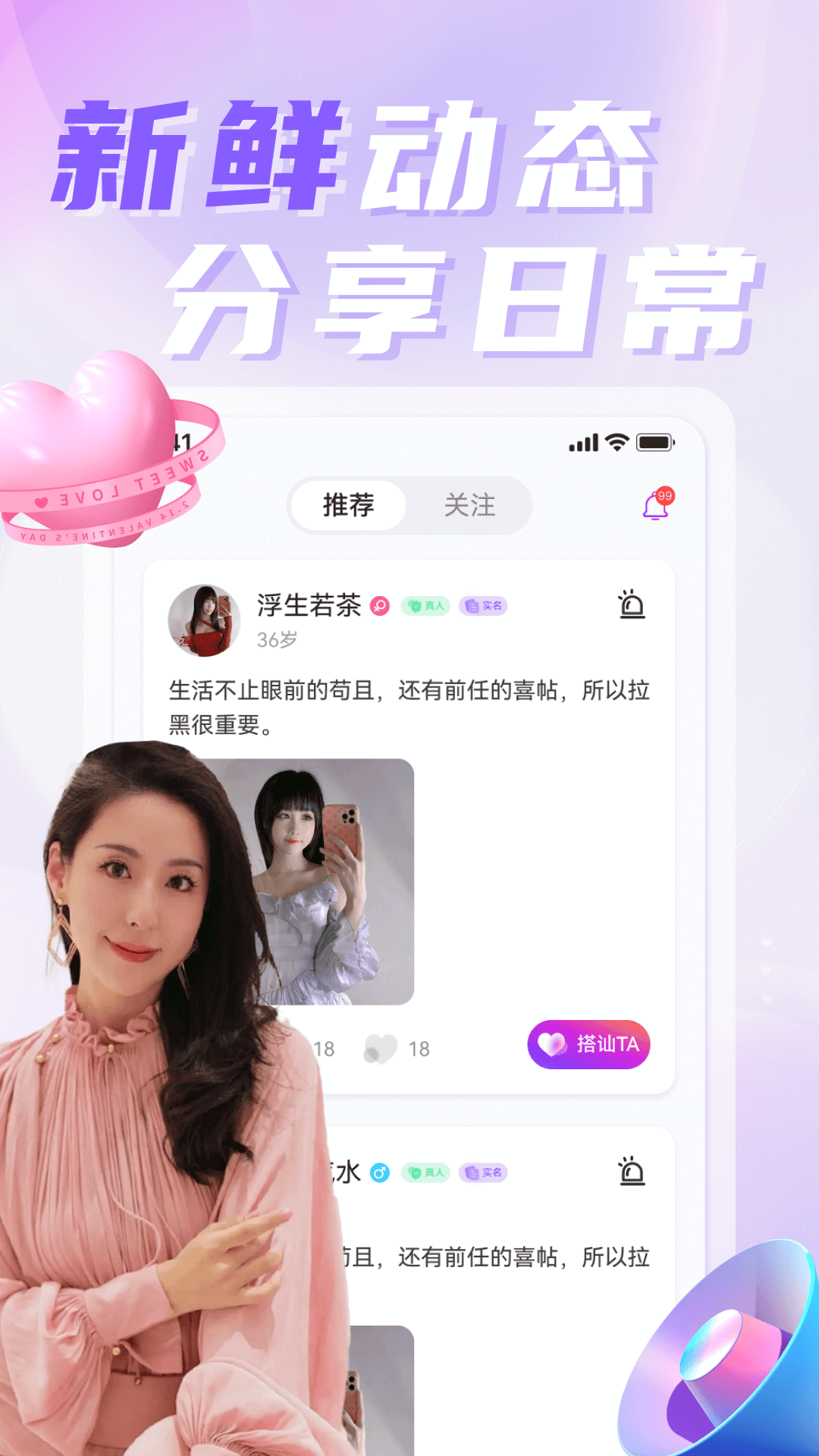 通过智能匹配算法,可快速发现兴趣相投的伴侣并即刻开启视频或语音聊天。实时视频通话功能让面对面交流成为可能,真实感受对方的情感表达。动态分享功能支持记录生活点滴,与好友分享心情随拍,增强彼此共鸣。附近的人功能基于地理位置筛选,方便查看周围用户的基本信息和兴趣爱好,为线下见面创造更多机会。所有功能均建立在严格审核机制之上,确保交友环境的真实健康。