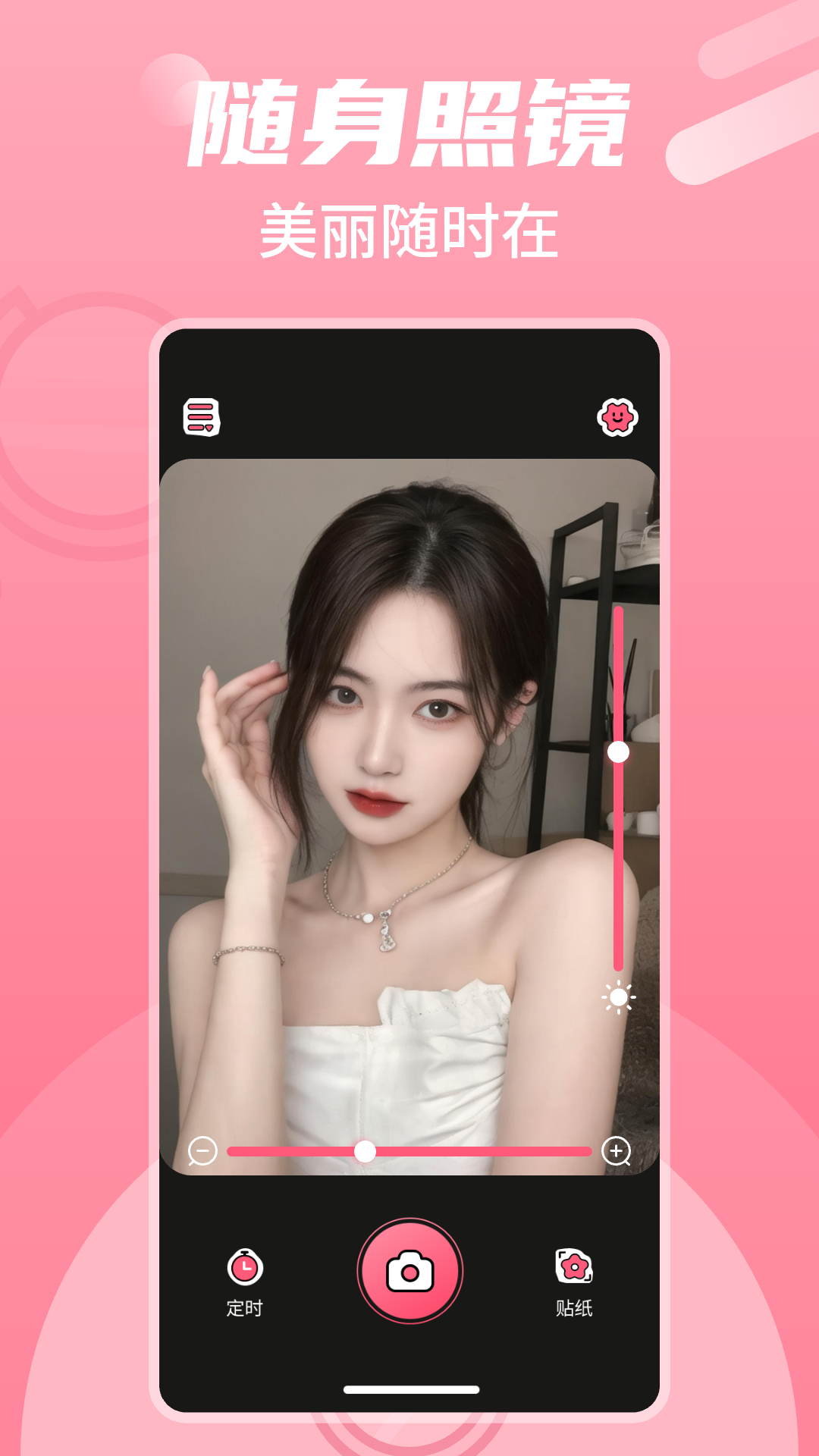 高清镜子自拍镜是一款集实时镜像与创意拍摄功能于一体的移动工具。这款产品通过手机前置摄像头提供高清晰度的实时镜像效果,将整个屏幕转化为一面简洁明了的镜子界面。不仅能够满足日常妆容检查和发型整理的需求,还融合了自拍相机、贴纸特效、亮度调节等多项实用功能,为追求精致生活的群体提供了便捷的数字化美妆解决方案。