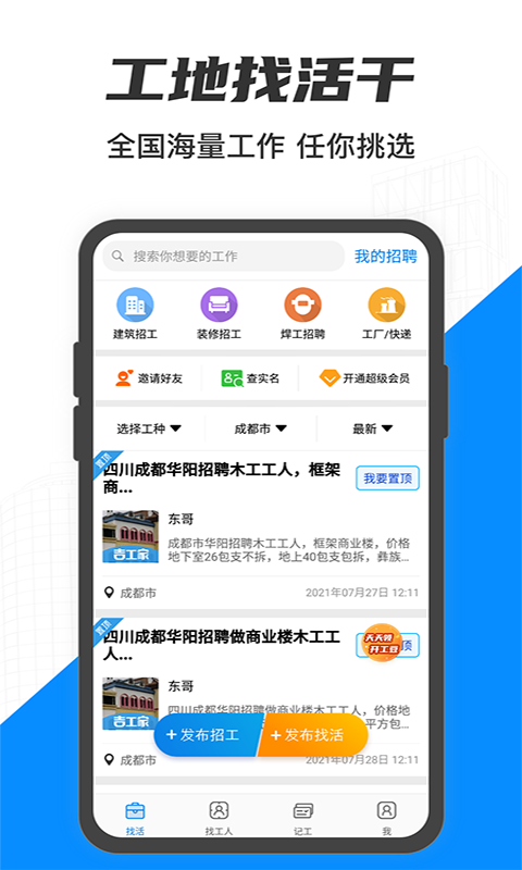 和那些啥行业都做的招聘平台不同,工地招工就认准了建筑圈,信息更对口、服务更专业。它特别懂咱们工地的流动性,无论是想找全国范围的活,还是只想在家门口干,平台都能满足,地方性需求照顾得很到位。招工形式也灵活得很,长年工、短期工、包活、点工、甚至实习岗位都能发布和找到,满足各种用工需求。工友还能在平台上申请展示自己的技能证书(比如电工证、焊工证),亮出真本事,老板招人时也能快速识别靠谱人选。这里还有个工友自己的交流小社区,分享经验、问问难题、聊聊行情都行,让工友们感觉找到了组织。