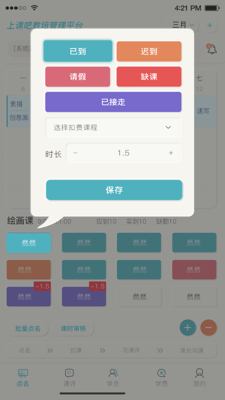 上课吧的核心功能覆盖了教培管理的方方面面。在学生管理上,你可以快速录入学员基本信息、查看课表安排,并跟踪学习成果,比如考试成绩或进步情况。教师管理模块则帮你维护教师档案、制定授课计划,并进行教学效果考核,确保师资质量。课程管理更是亮点,支持课程制定、智能排课和在线课程发布,让课程规划井井有条。应用还提供直播授课功能,老师能用视频或语音实时互动教学;课后回放让学员随时复习;开课提醒功能则避免错过重要课程。通过这些工具,机构能实现从招生到结课的全流程管理,操作简单,上手快。