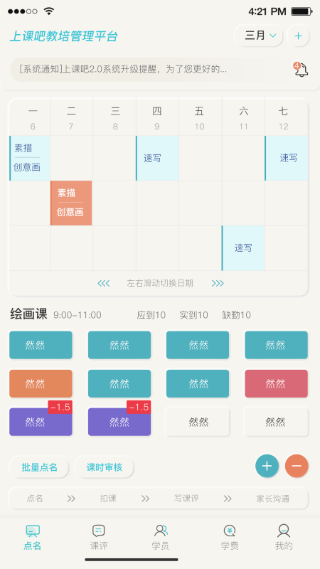 上课吧的优势在于显著提升效率和便捷性。对机构来说,它能批量处理学生点名、课程安排等事务,节省大量时间,让管理更高效;对学员而言,打破时间和地域限制,随时随地通过手机学习,弹性十足。应用覆盖多学科课程,从英语、编程到艺术培训,内容海量且更新快,特惠活动还能限时参与。界面设计友好,操作直观,即使新手也能快速上手。这些优势转化为更好经营回报,机构能提供更专业服务,学员则享受个性化学习体验。