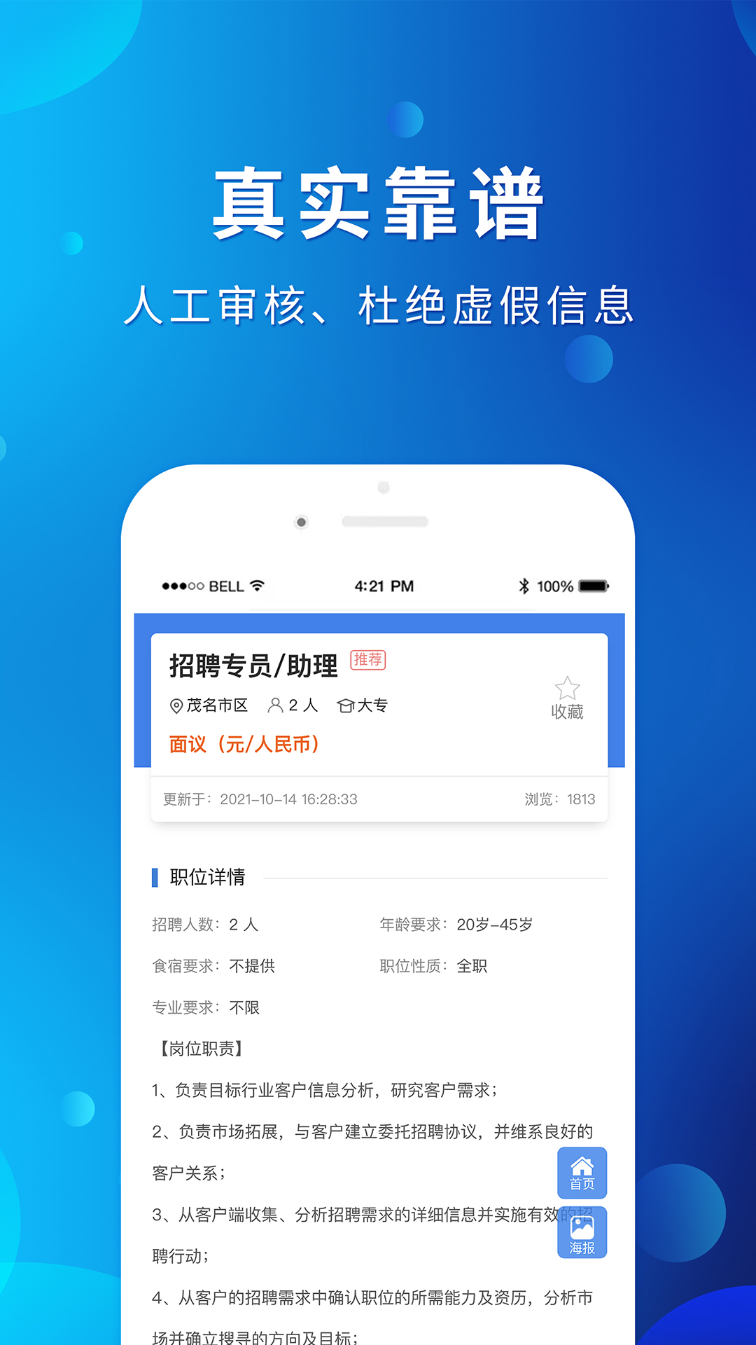 茂名招聘网是一款专注于茂名地区人才招聘与求职服务的综合性移动应用平台。该应用致力于为求职者和企业搭建高效、便捷的沟通桥梁,通过智能化技术实现精准匹配,满足本地化招聘需求。平台依托多年运营经验,已建立完善的信用体系,确保信息真实可靠,成为茂名及周边地区用户求职招聘的首选工具。