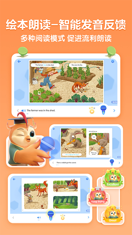App的特色功能设计得既互动又实用,首先是阅读锦囊搭配10种趣味思维导图,通过动画示范鼓励孩子们在阅读中思考、表达观点,比如用流程图梳理故事逻辑,潜移默化锻炼思维能力。另一个特色是智能朗读系统,每本绘本支持三种朗读模式,配合智能纠音及时反馈,宝贝们能练习地道发音,提升朗读流畅度。自适应学习路径基于日常行为深度挖掘,绘制中国儿童阅读成长曲线,确保每个级别都完成适量任务,避免学习疲劳。这些特色让阅读不再是枯燥任务,而是一场探索之旅。