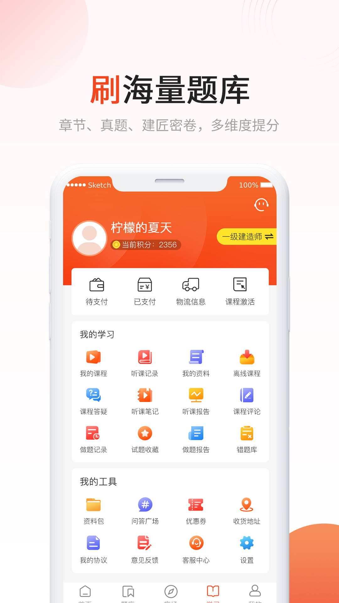 应用涵盖四大核心业务板块:建工类(建造师、造价工程师等)、医学类(执业药师、护士资格等)、财会类(初级/中级会计、注册会计师等)及学历类(成人和网络教育)。主要功能包括:1. 课程体系:提供直播课、录播课及免费试听模块,支持语速调节与离线缓存,适配碎片化学习场景。2. 智能题库:包含每日一练、章节练习、历年真题及独家建匠密卷,每题配备视频解析,强化考点理解。3. 学习管理:支持课程笔记记录、资料下载、听课进度跟踪,并设有24小时在线答疑通道。