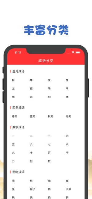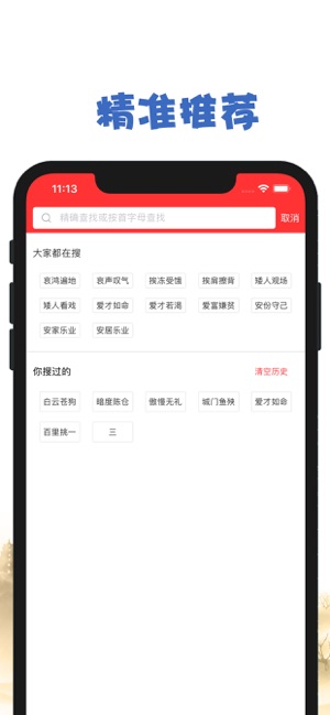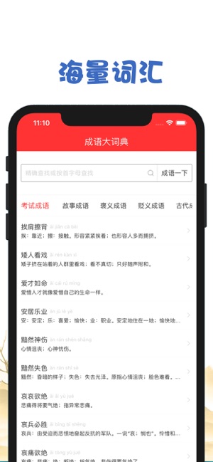 打开应用,你会发现它的核心功能设计得既贴心又强大:支持模糊查询、首字匹配、按位置查找甚至手写输入,再冷僻的成语也能秒速定位。每个词条都像一本微型百科全书——注音、释义、出处、经典例句、近反义词、用法解析一应俱全,还搭配900多幅古朴精美的插图帮助理解抽象含义。最特别的是它内置的语文同步学专区,把小学到高中的必考成语分类整理,让孩子精准积累,家长省心省力。