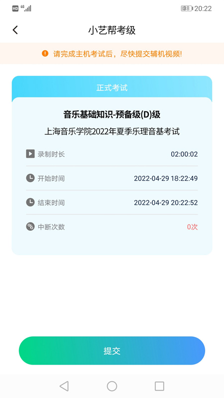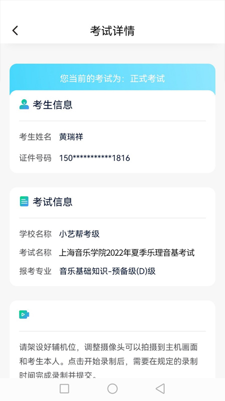 该应用主要支持线上考级过程中的辅助视频录制与提交。考生使用辅机位设备扫描主机位生成的二维码即可启动录制功能,考试结束后可直接提交辅助视频。系统涵盖考前练习、线上报名、视频录制、成绩查询等核心环节,适配各艺术考级机构的考试模式,包括听辨题、理论知识选择题、填空题、问答题、视唱识别题等多种题型模块。通过整合视频录制与云监考方案,实现了艺考、研究生招考、单招、专升本等线上考试全场景覆盖,既支持主观题与客观题作答,也满足视频录制和实时互动面试需求。
