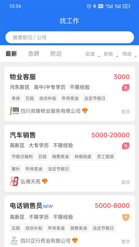该平台通过技术驱动与服务优化,在招聘领域形成差异化竞争力。面向求职者,提供岗位丰富、操作便捷的求职环境;面向企业,则提供成本可控、效果明显的招聘解决方案。海量职位数据库持续更新,确保信息的时效性。专业化的功能设计满足不同群体的差异化需求,从基础职位搜索到深度职业规划,构建了完整的服务体系。定位城市推荐功能实现全国省市范围的岗位覆盖,帮助实现就业目标。平台在运营过程中持续进行功能优化和体验升级,确保服务的稳定性和可靠性。