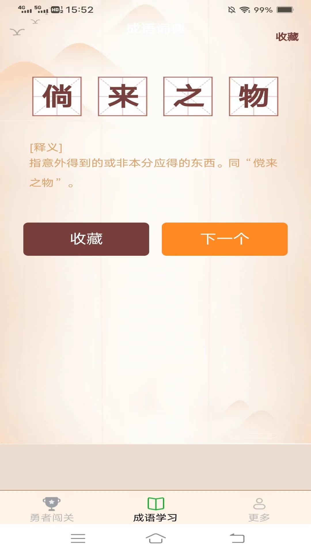 勇者闯成语是一款融合成语知识学习与趣味闯关玩法的教育类应用,通过游戏化设计让使用者在挑战中轻松掌握成语含义、用法及文化背景。内置海量题库涵盖填空、接龙、看图猜词等多种互动形式,适合全年龄段人群提升语文素养。采用分级闯关机制确保学习过程循序渐进,每个关卡配有详细成语解析包括拼音、出处、用法示例及历史故事,帮助全面理解成语背后意义。平台资源全部免费且无广告干扰,让学习体验更加纯粹高效。