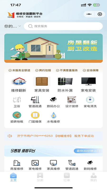 这款应用的核心是让您享受一站式服务体验。打开今言旭,您能看到清晰的分类,比如家电维修(如空调、冰箱、燃气灶)、家居清洗、开锁换锁、防水补漏,甚至厨卫改造等。只需在搜索栏输入关键词,系统就会智能推荐匹配的服务商;选定后,立即预约,专业师傅会在30分钟内上门处理。流程简单流畅:注册登录后,浏览服务、下单支付、实时跟踪师傅位置,全程无需电话反复确认。它还支持加购物车功能,方便您一次性预约多项事务,大大节省精力和时间。如果您中途遇到疑问,内置的客服系统提供快速响应,确保问题及时解决,让服务过程安心无忧。