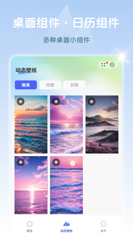 打开这个小宝藏,你会发现里面内置了海量的高清壁纸资源,涵盖了风景、动漫、明星、萌宠、影视、汽车等多种分类,分类详细且内容持续更新。可以根据自己的喜好选择不同的壁纸风格,一键设置即可更换桌面或锁屏壁纸。动态壁纸功能更是让手机桌面变得生动有趣,比如海水涌动、鲜花绽放等效果,带来沉浸式的视觉体验。还支持自动更换壁纸功能,小伙伴们可以设定时间间隔,让壁纸每天自动切换,保持新鲜感。